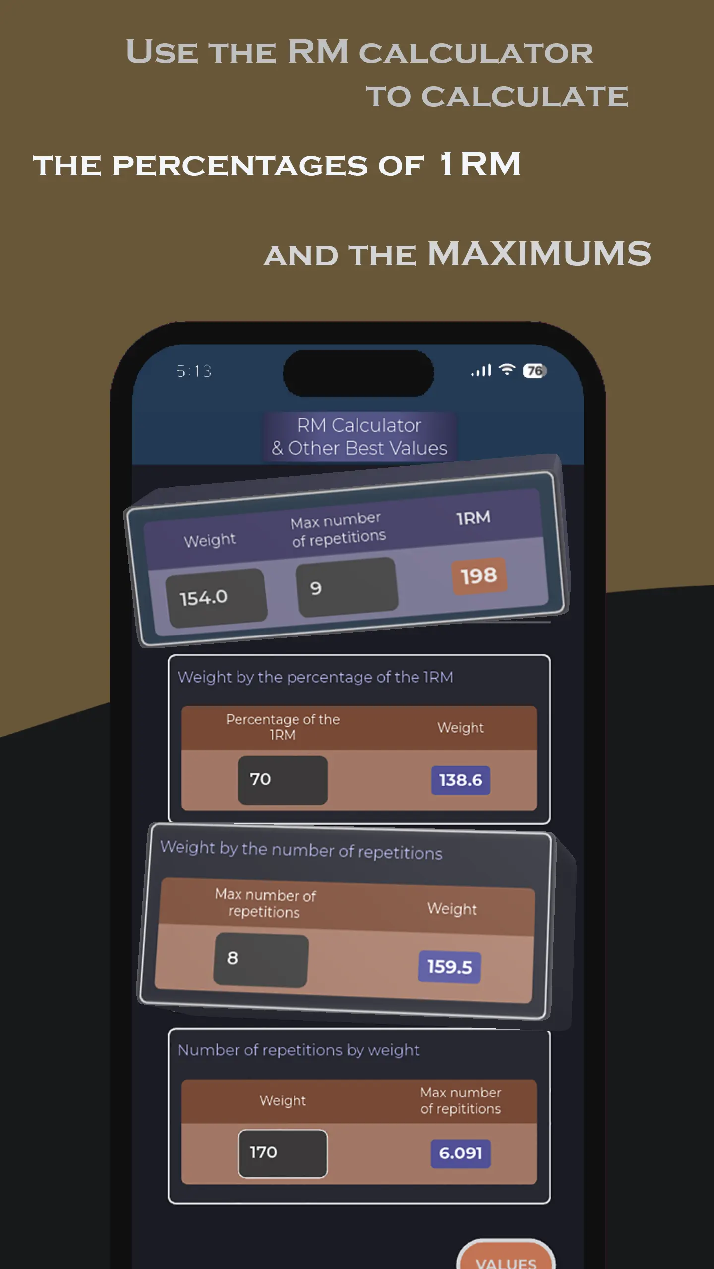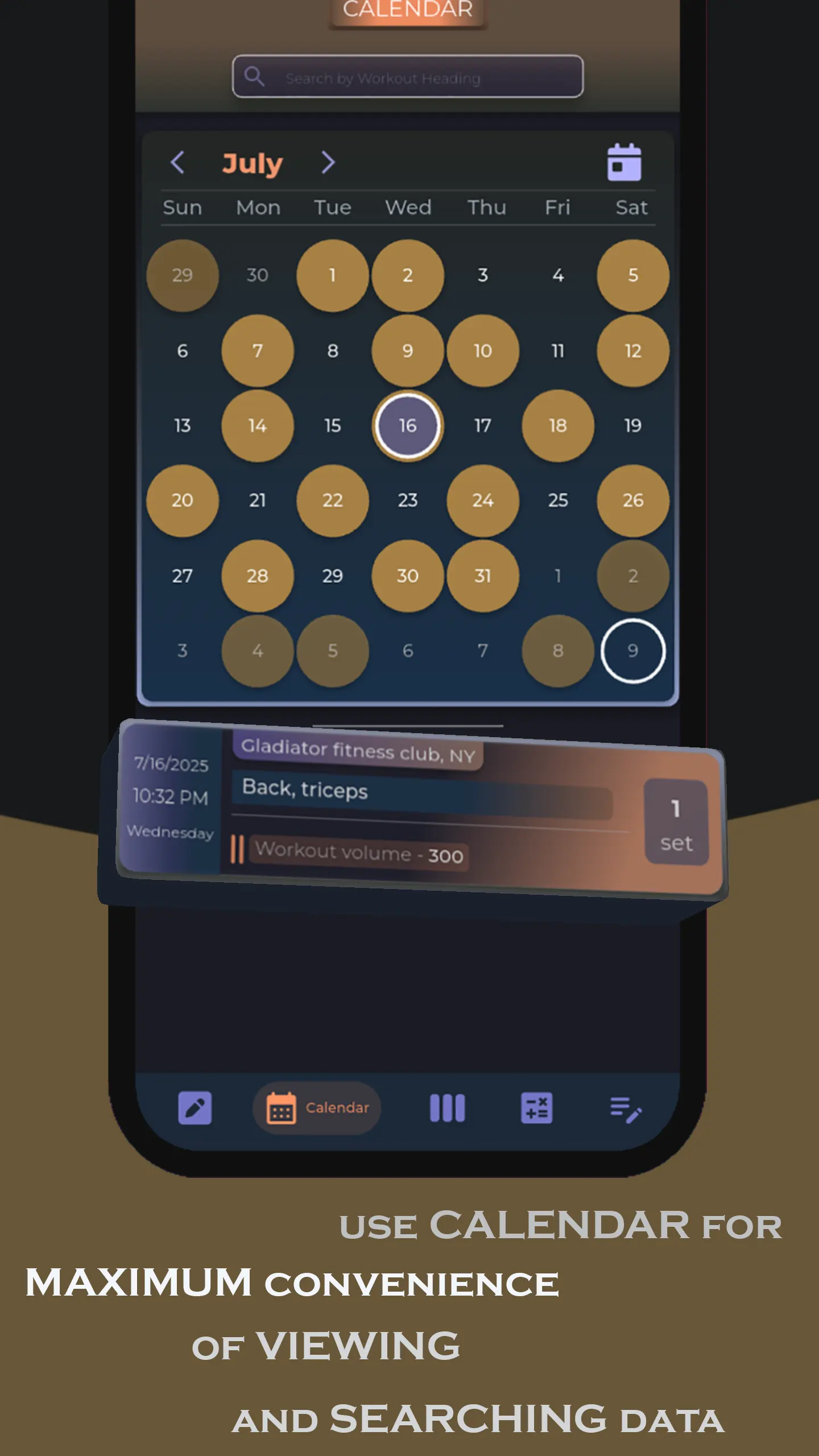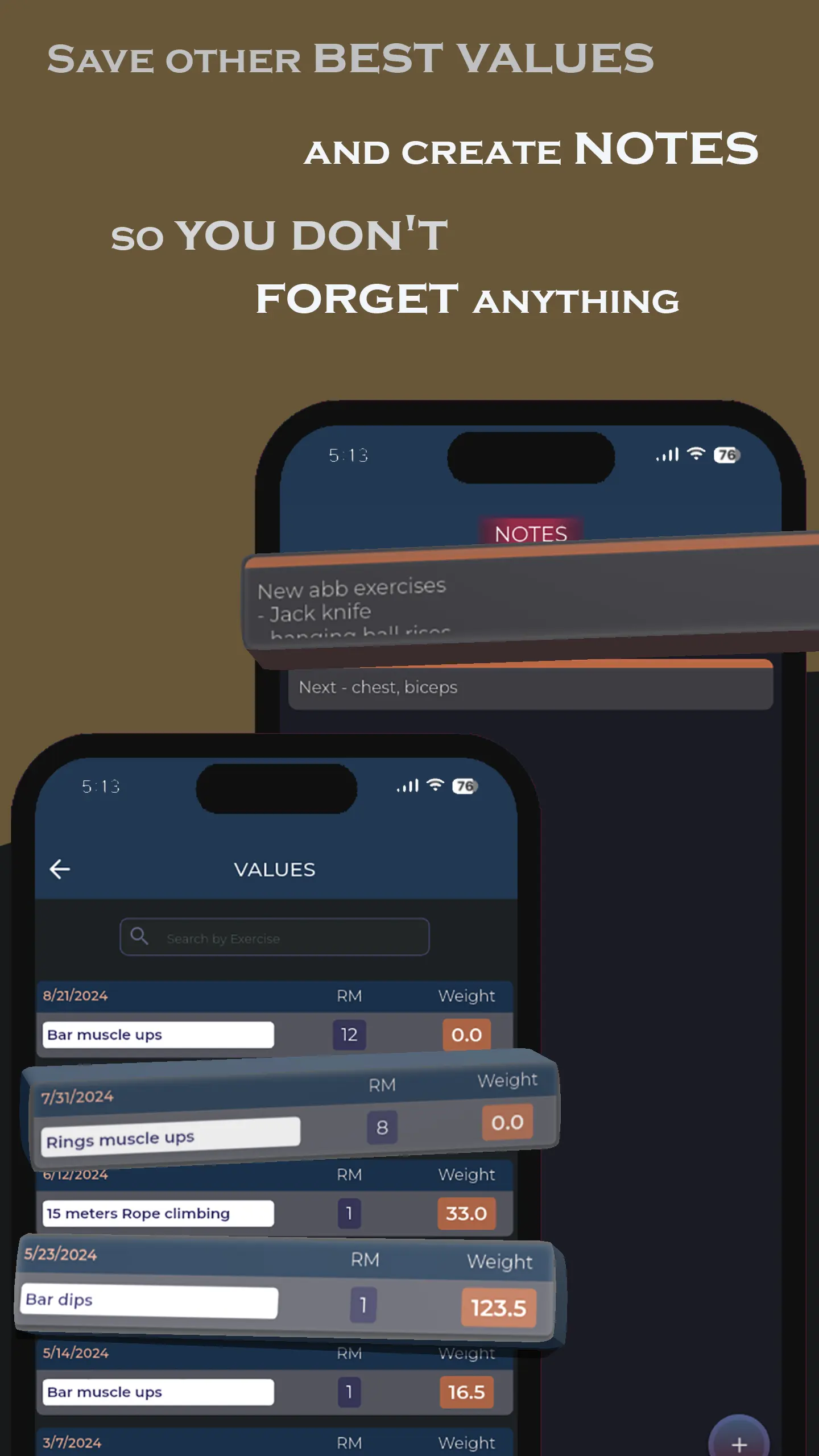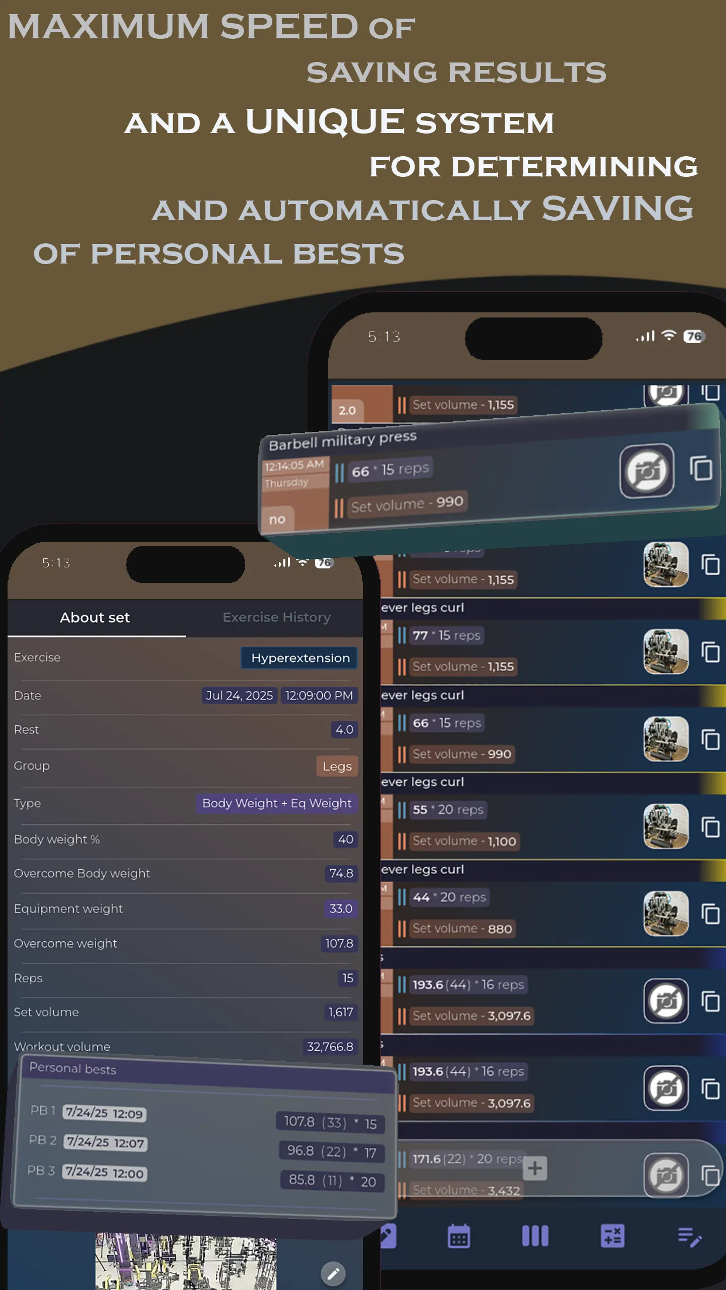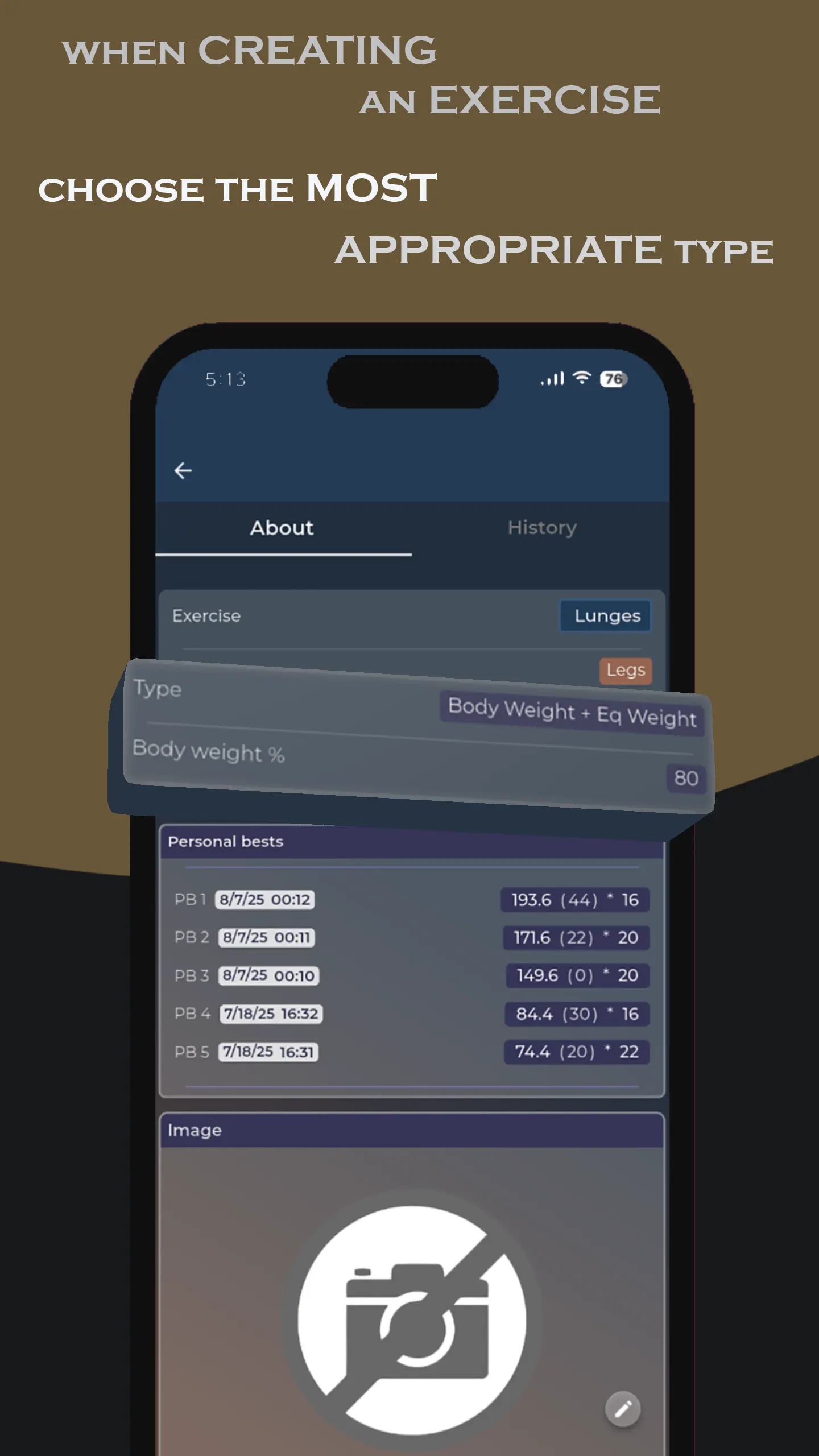• Creating different types of CUSTOMIZABLE exercises (that take into account body weight or part of it and default weight of equipment),